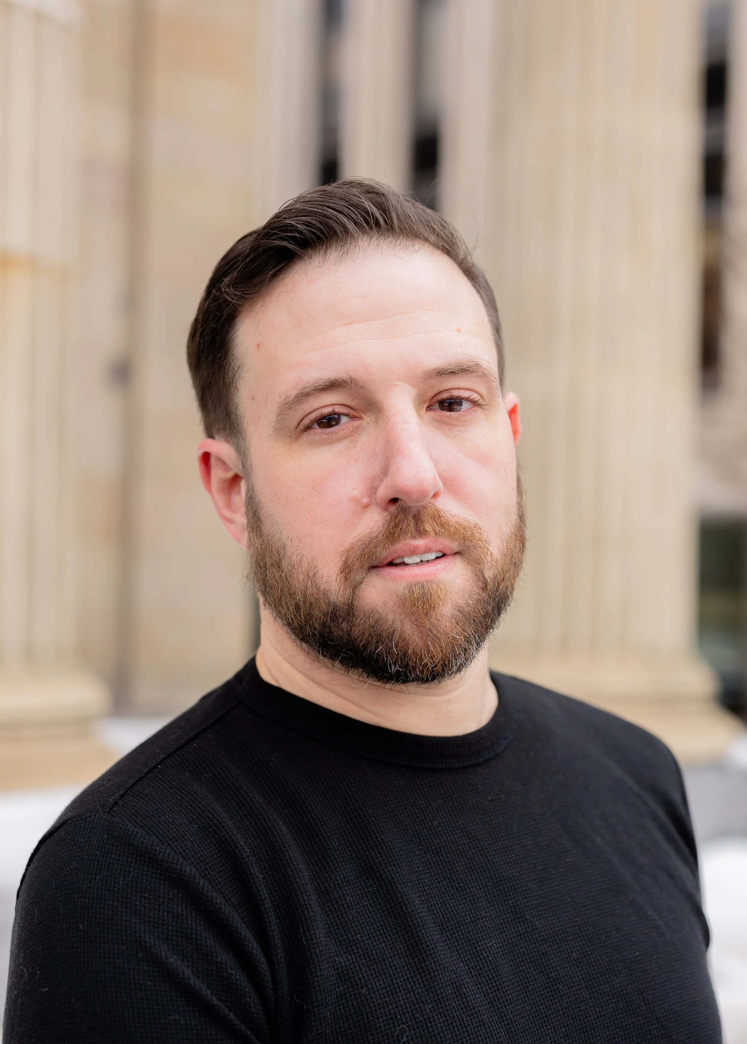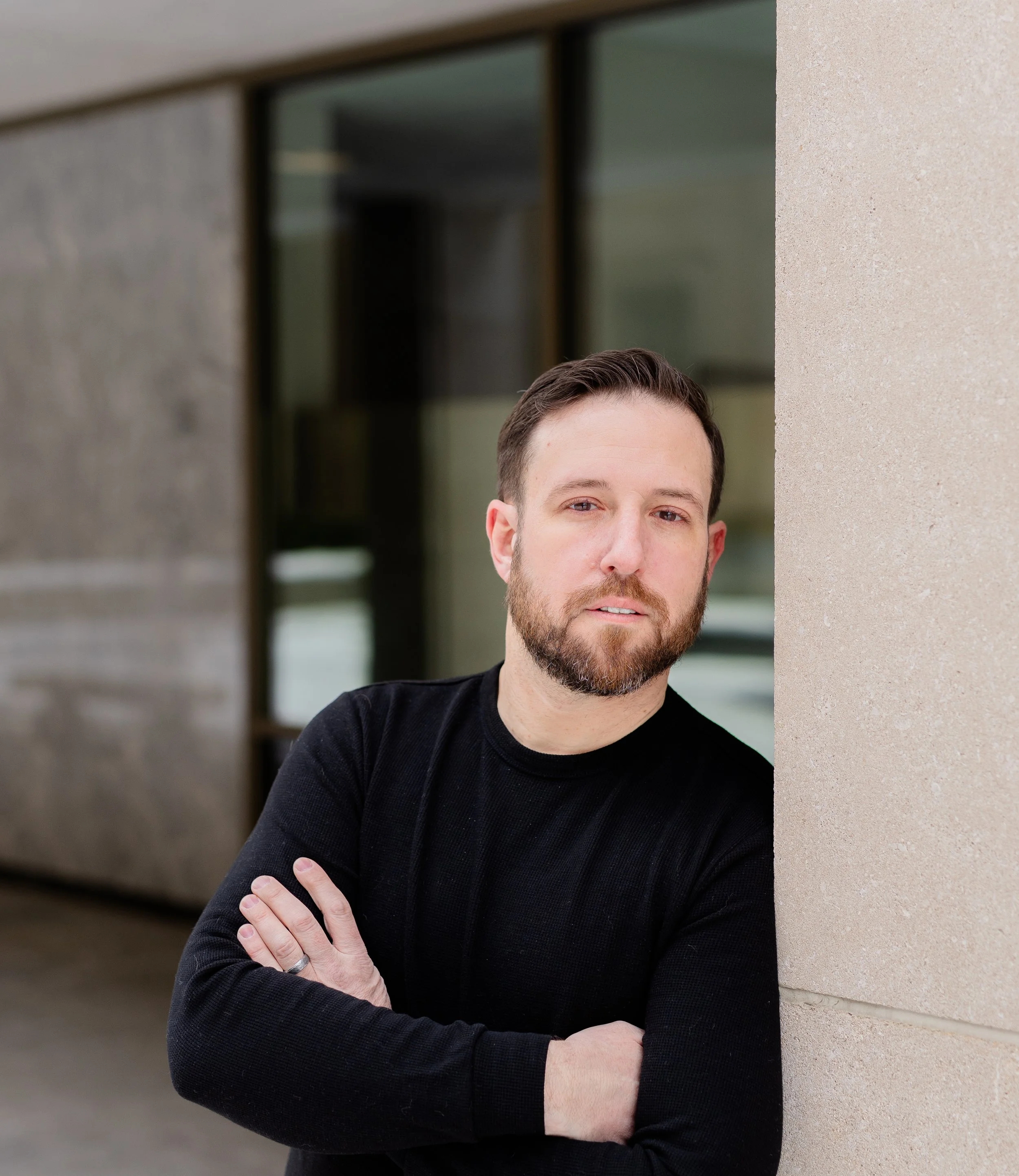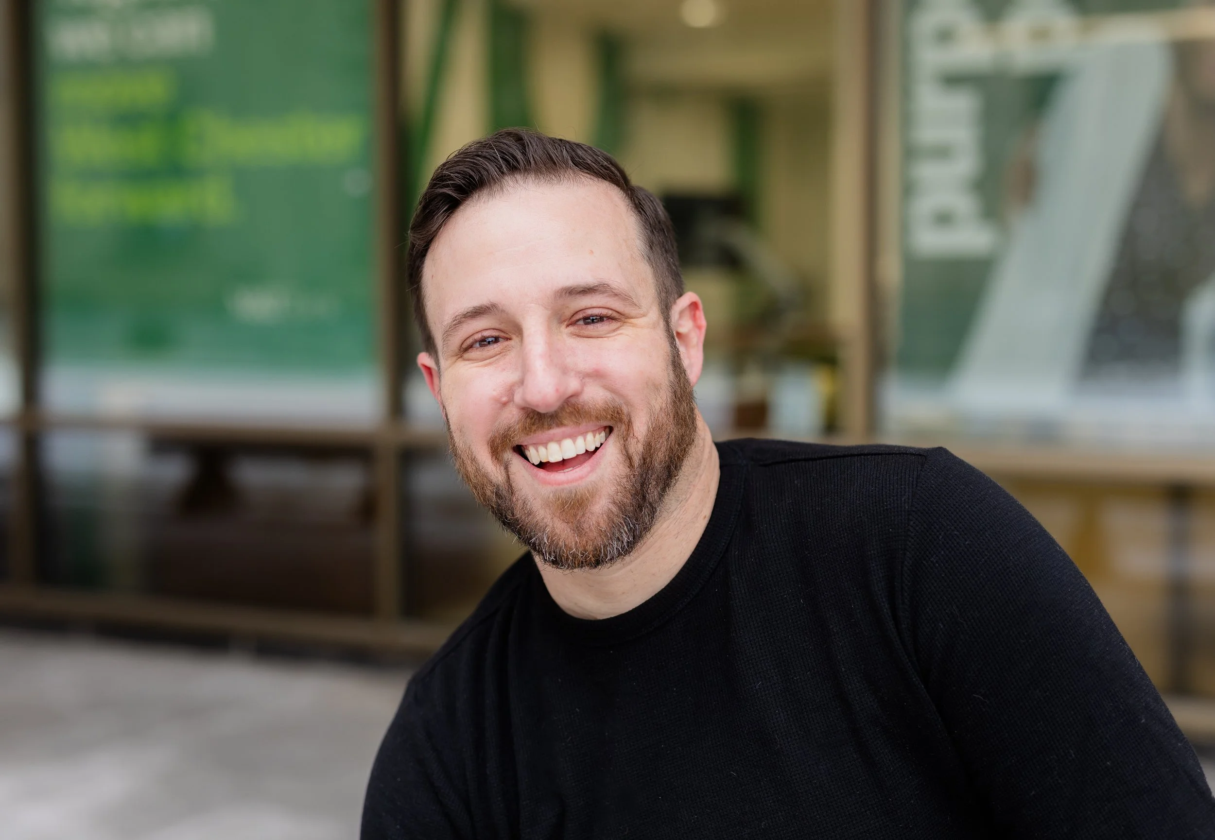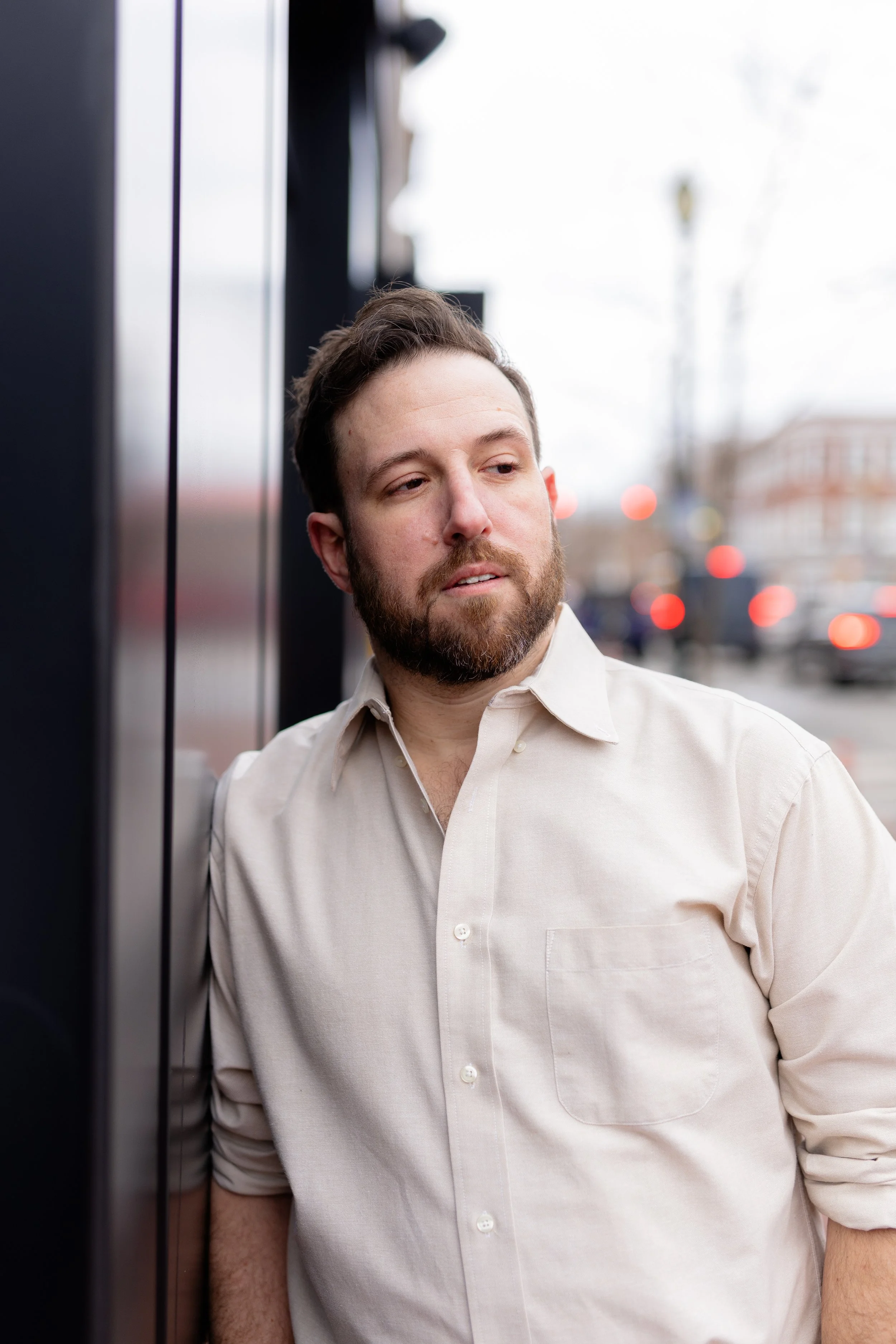 At this point, we’ve been photographing Doug and his family every year, so there’s already that built-in comfort. No awkward warm-up phase, no trying to figure each other out. So when he told me he wanted to put together acting headshots and start going after movie roles and gigs, it felt like a really natural next step—and a fun one to be part of. We met up in downtown West Chester, which ended up being the perfect setting for what he needed. These weren’t meant to be super polished, traditional studio headshots. No plain backdrops or stiff posing. We kept everything natural—using the light as it was, moving through different spots, and letting the environment do some of the work. The goal was simple: make it feel like him.